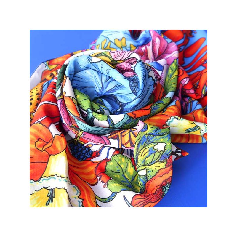 Printed on polyester as soft as silk chiffon, the vibrant colours of these scarves will win you over!