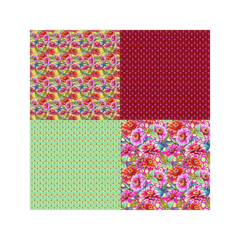 This is the smallest scale of this "Zinia" pattern, which is also available in a larger size with a fuchsia background or in an XXL version (2.80 m wide!).