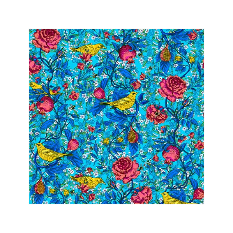 The pretty BALI pattern is a whimsical floral design where colourful birds live.