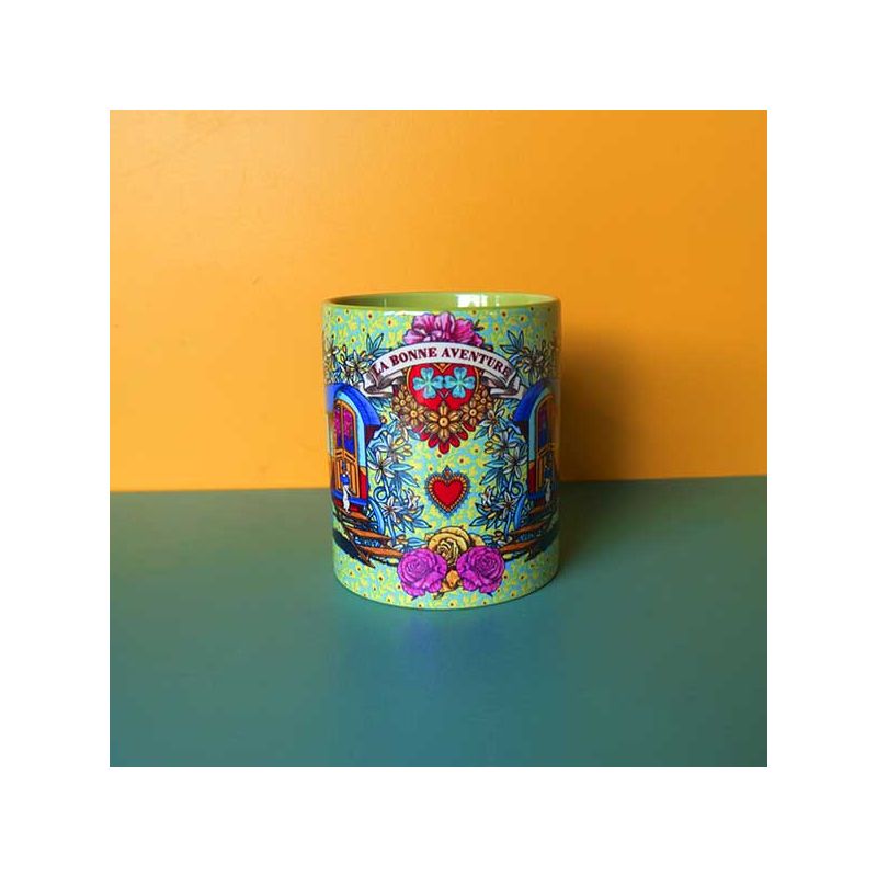 A Victorian-inspired mug, influenced by the delicious flowery chromos that were exchanged at the time.