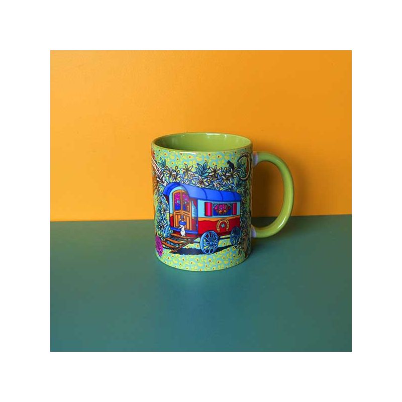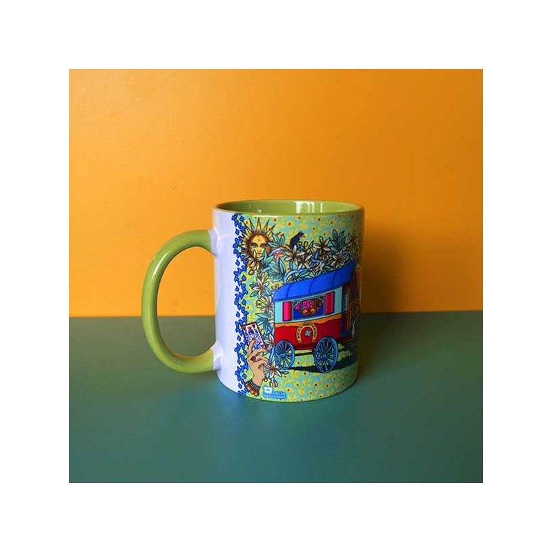 This mug features a pair of exotic green parakeets, the mascots of the Andalouse collection.