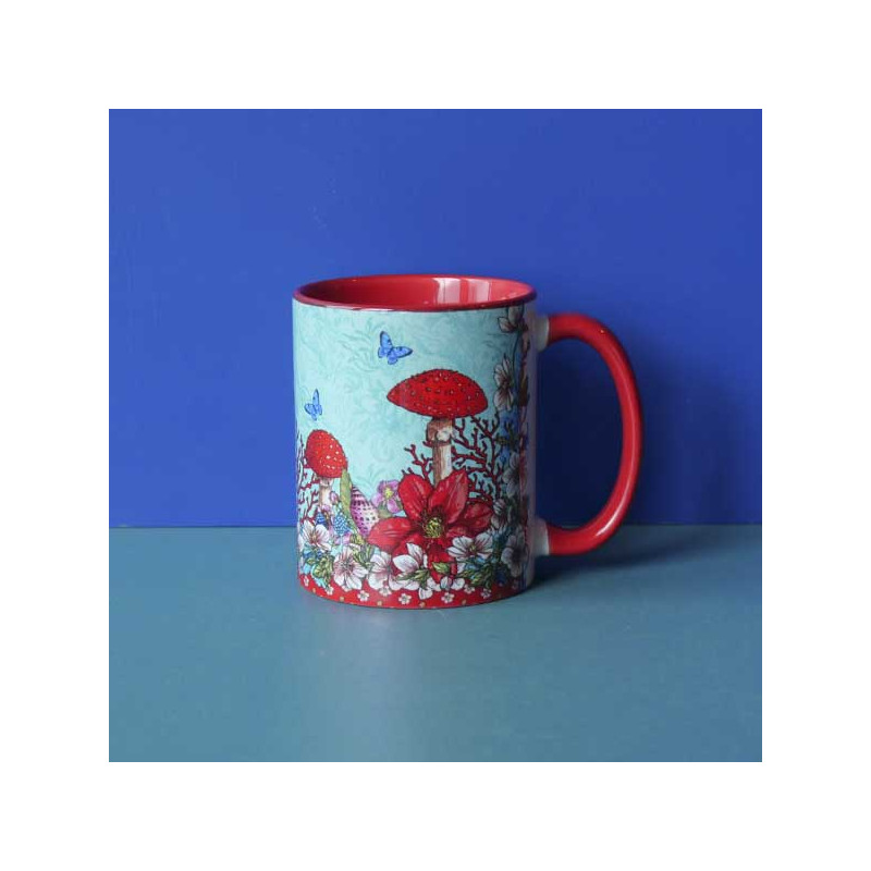 This mug is decorated with coral, flowers, mushrooms, and seashells to transport you to a fairy-tale world.