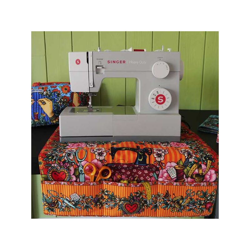 Its pockets are perfect for storing basic equipment, its ties can be adjusted to fit many different machine sizes, and when you're sewing, it slips conveniently under the machine.