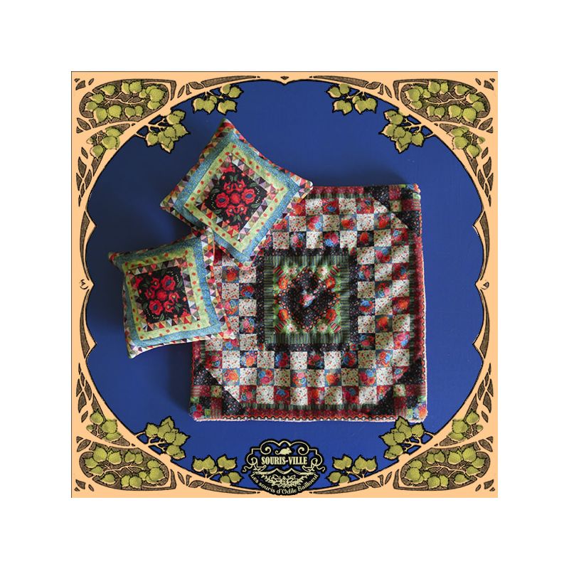 A design rich in poetic details: squirrels, garlands of lanterns, pennants, multicoloured stars... which will be even more magical on a cushion or a large bag. (You can find the tutorial for the Large Bag here.)