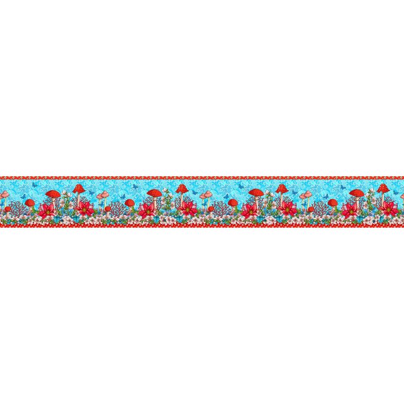 A border as elegant as it is mysterious, interweaving flowers and shells on a midnight blue seaweed background.