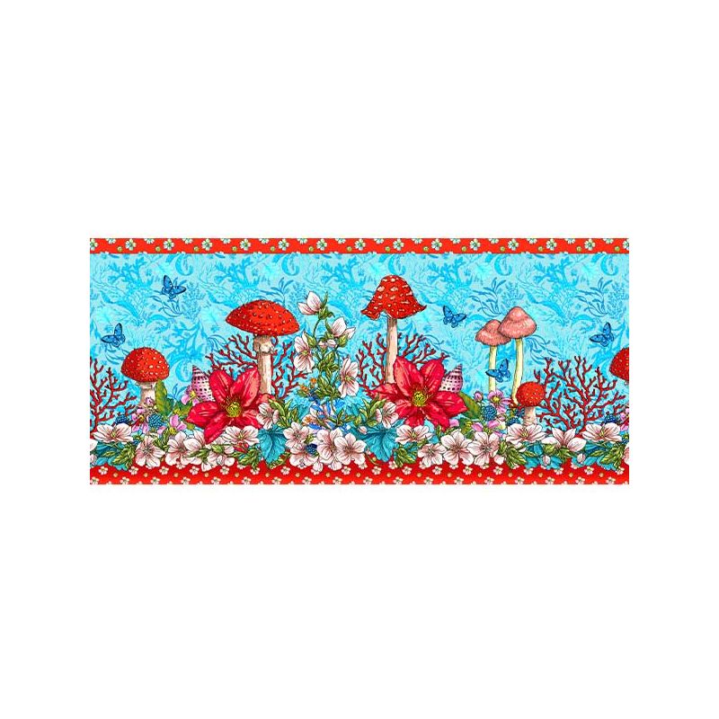 This border has the charm of a cabinet of curiosities, combining mushrooms, rare flowers and shells...