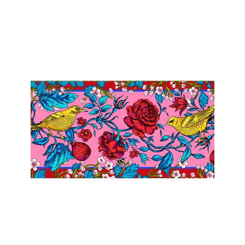 Choose this mosaic-inspired border, adorned with flowers and birds, to create dazzling little pouches.