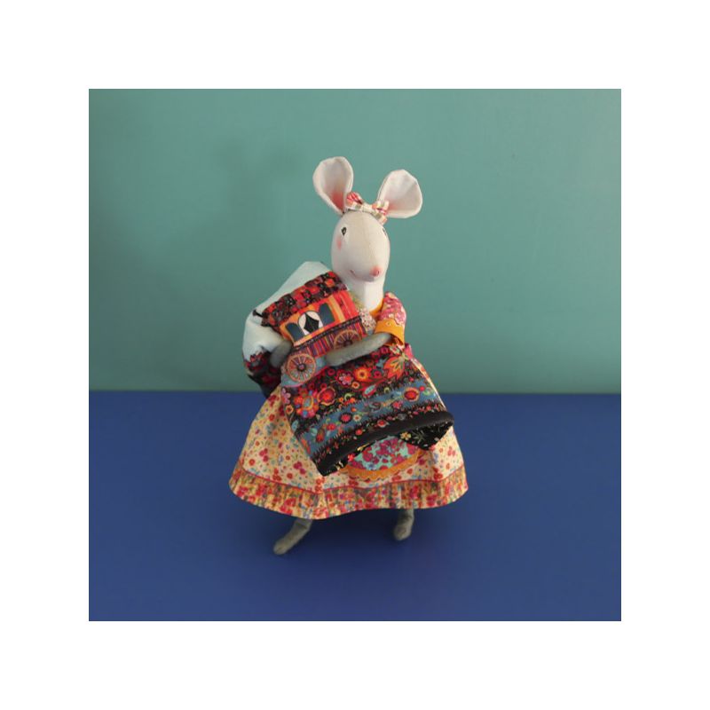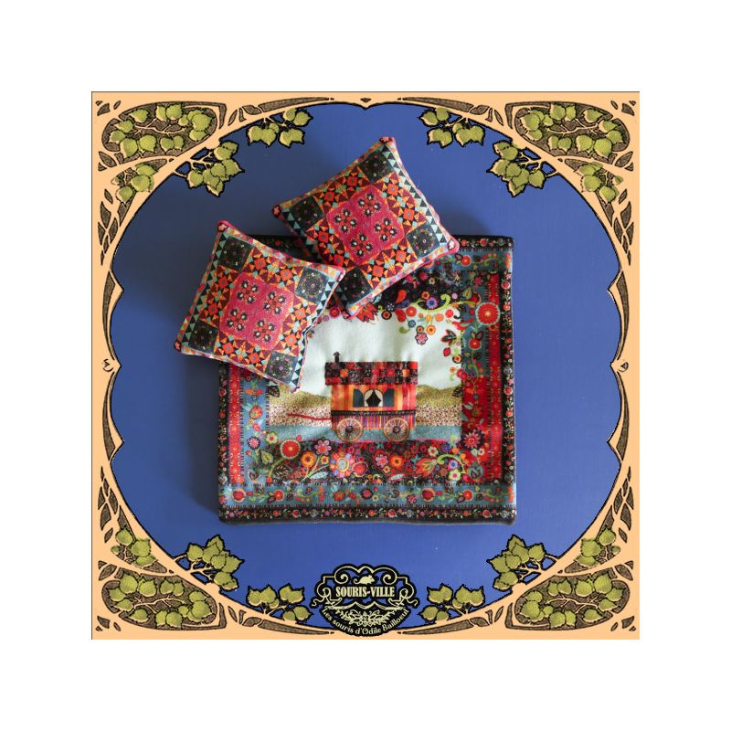 Format: carte textile 33cm x 23cm avec imprimé 1 couvre lit 20cm x 20cm et 2 carrés pour oreiller 10cm x 10cm