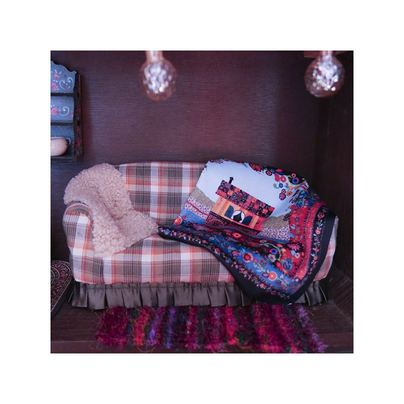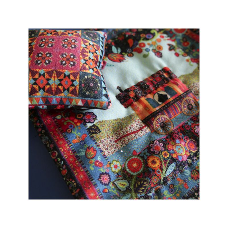 Un motif riche de détails poétiques : écureuil, guirlande de lampions, fanions , étoiles multicolores...qui seront encore plus magiques sur un coussin ou un grand sac.