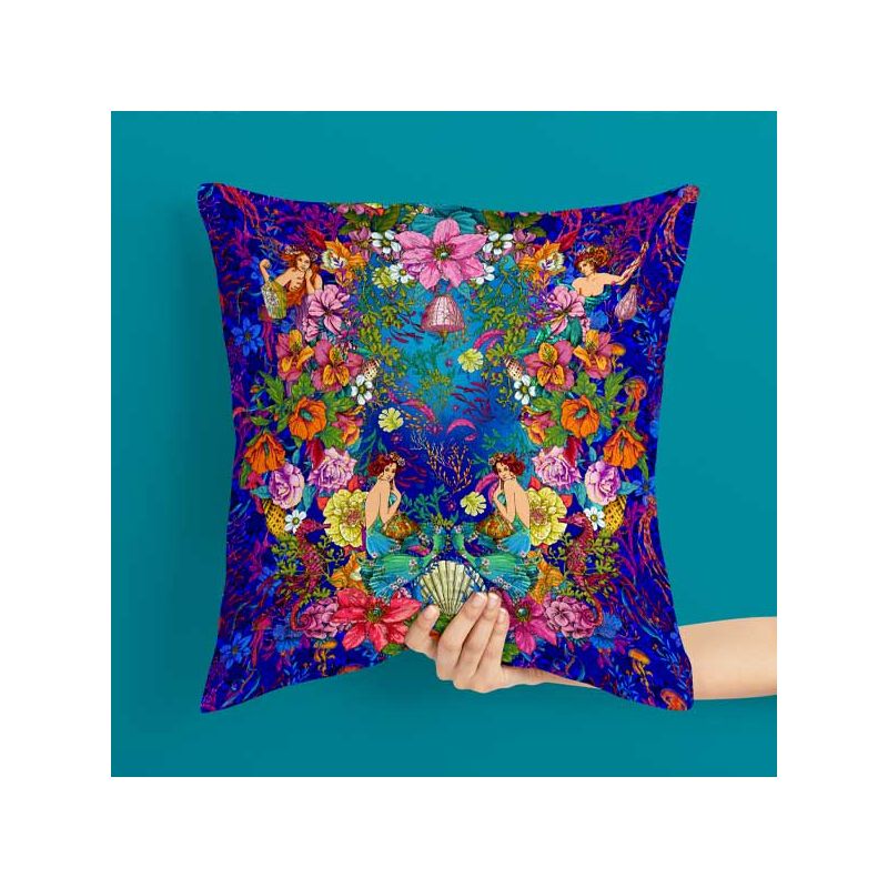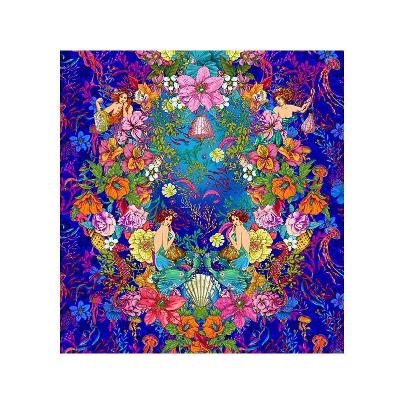 Cette grande illustration sur velours vous fera voyager dans une ambiance nomade et féérique au milieu de paons familiers et de fleurs incroyables.