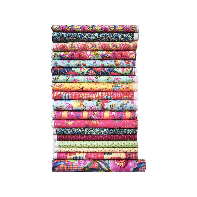 23 fats quarters (coupons de 45 x 55 cm) à associer dans des patchs ou des accessoires vitaminés