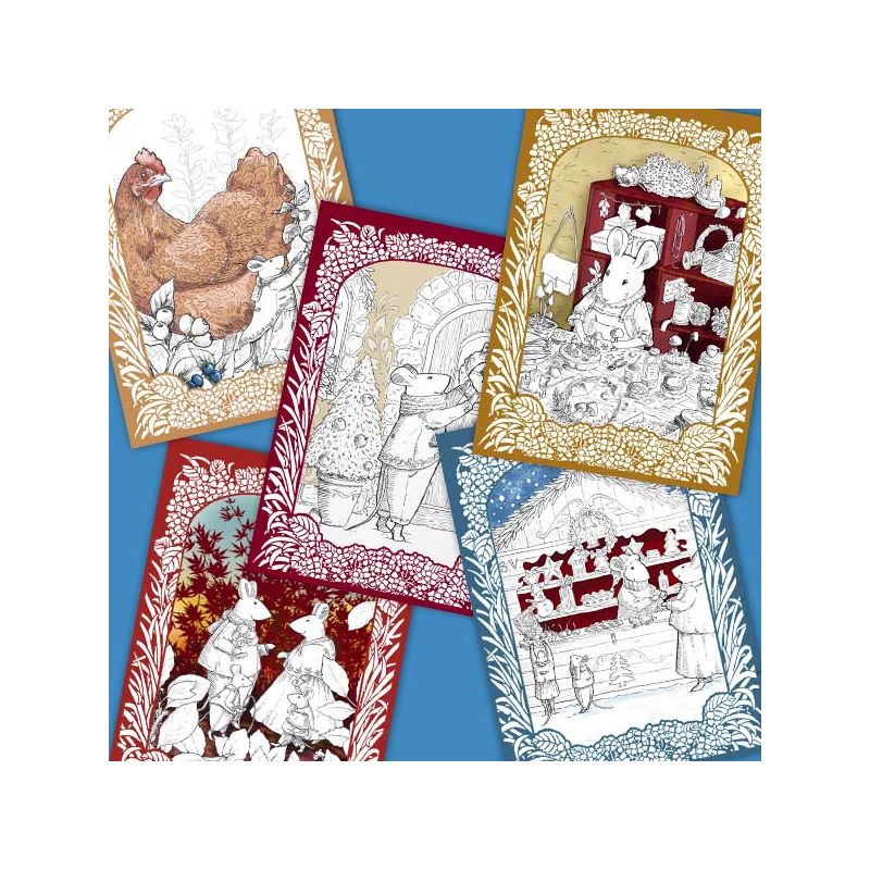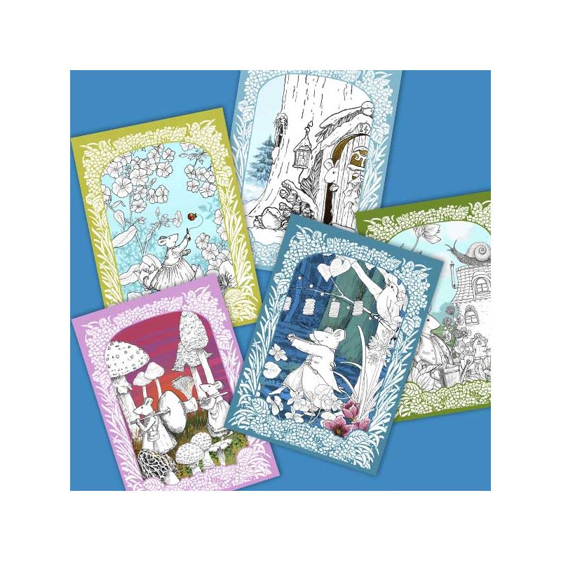 L'univers coloré et joyeux d' Odile se retrouve ici prêt à poster , idéal pour faire voyager vos messages.