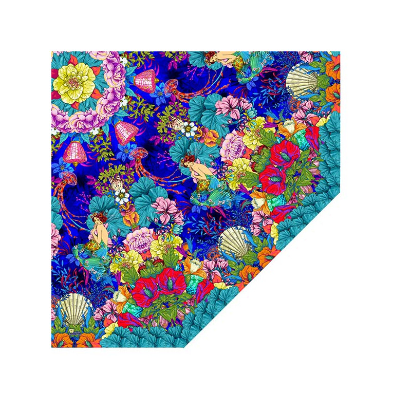 Ces sirènes ornent un fond marin onirique peuplé de coraux, de fleurs, de lampions...