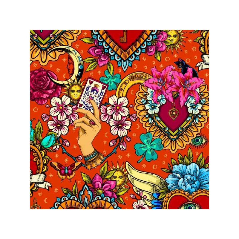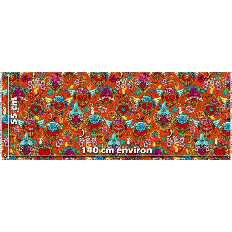 Le style « tatouage rétro » apporte à ce tissu une délicieuse touche vintage et décalée.